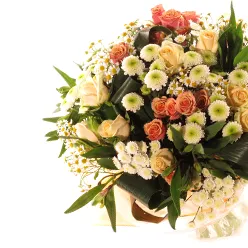 • Стандарт - роза - 5 шт., альстромерия - 5 шт., зелень, упаковка, лента
