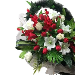 Траурный букет из красных и белых роз № 13