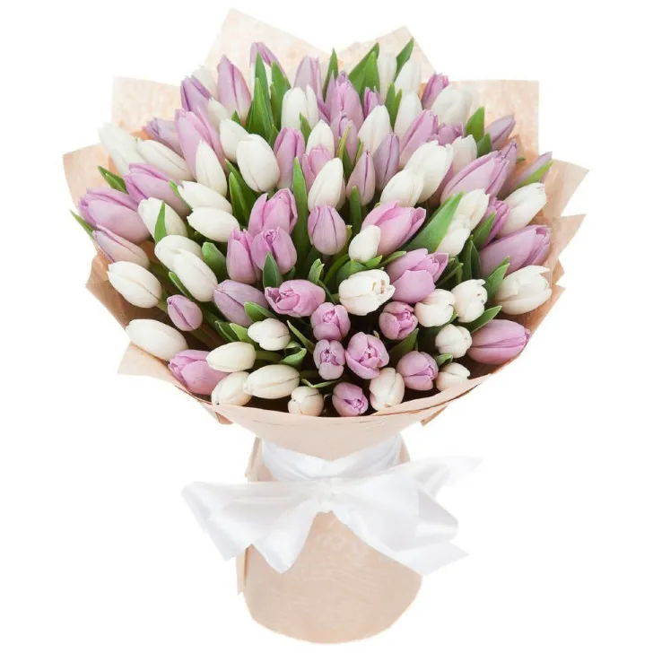 Букет тюльпанов Бело-розовый пудинг