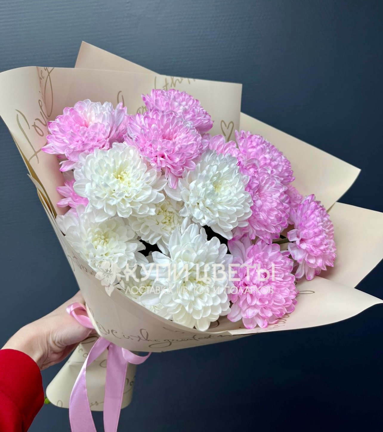 Состав букета: Кустовые хризантемы,упаковка,лента