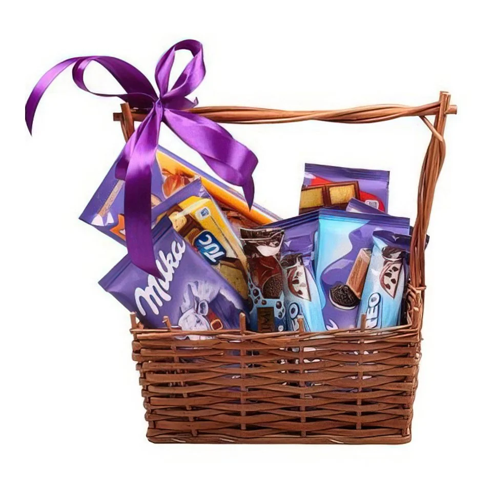Корзина сладостей (шоколад ТМ "Milka", печенье ТМ "Tuc", ТМ "Oreo").