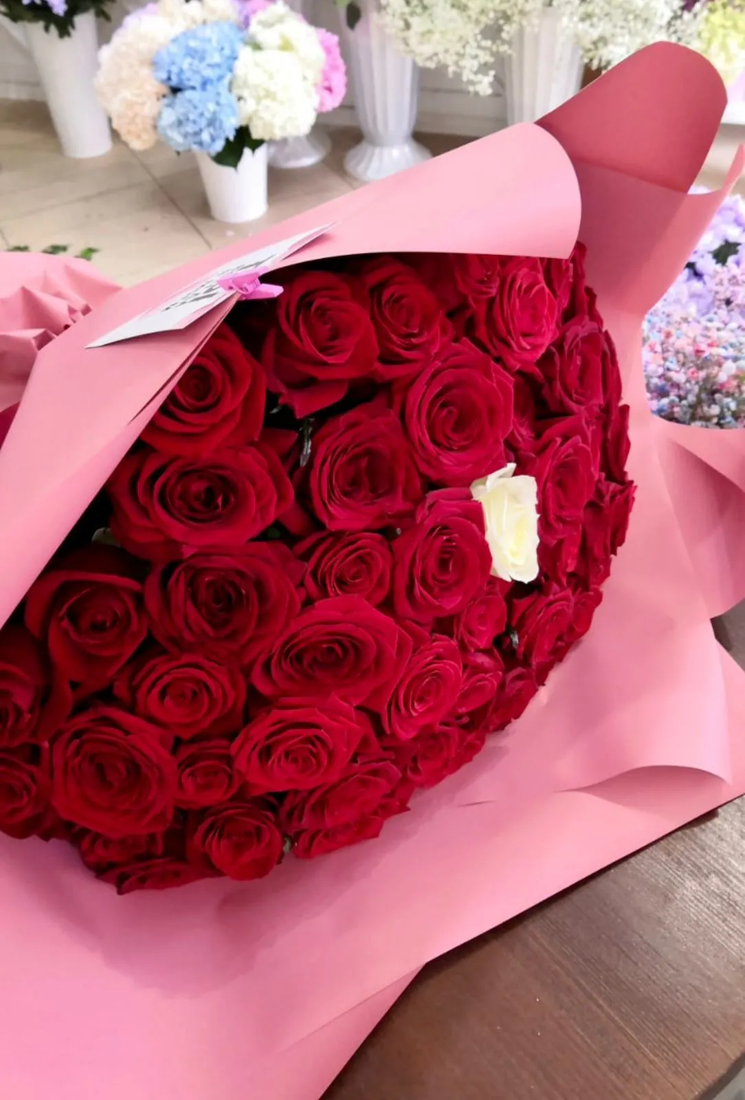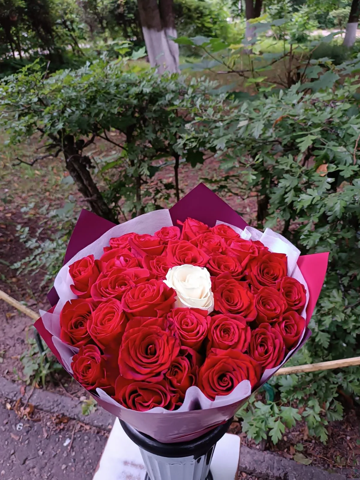 Букет "Моя единственная"  произведет фурор !Любимая девушка или члены семьи, безусловно, оценят все великолепие огромного количества красивых красных роз. Красный цвет всегда считался символом любви и страсти.