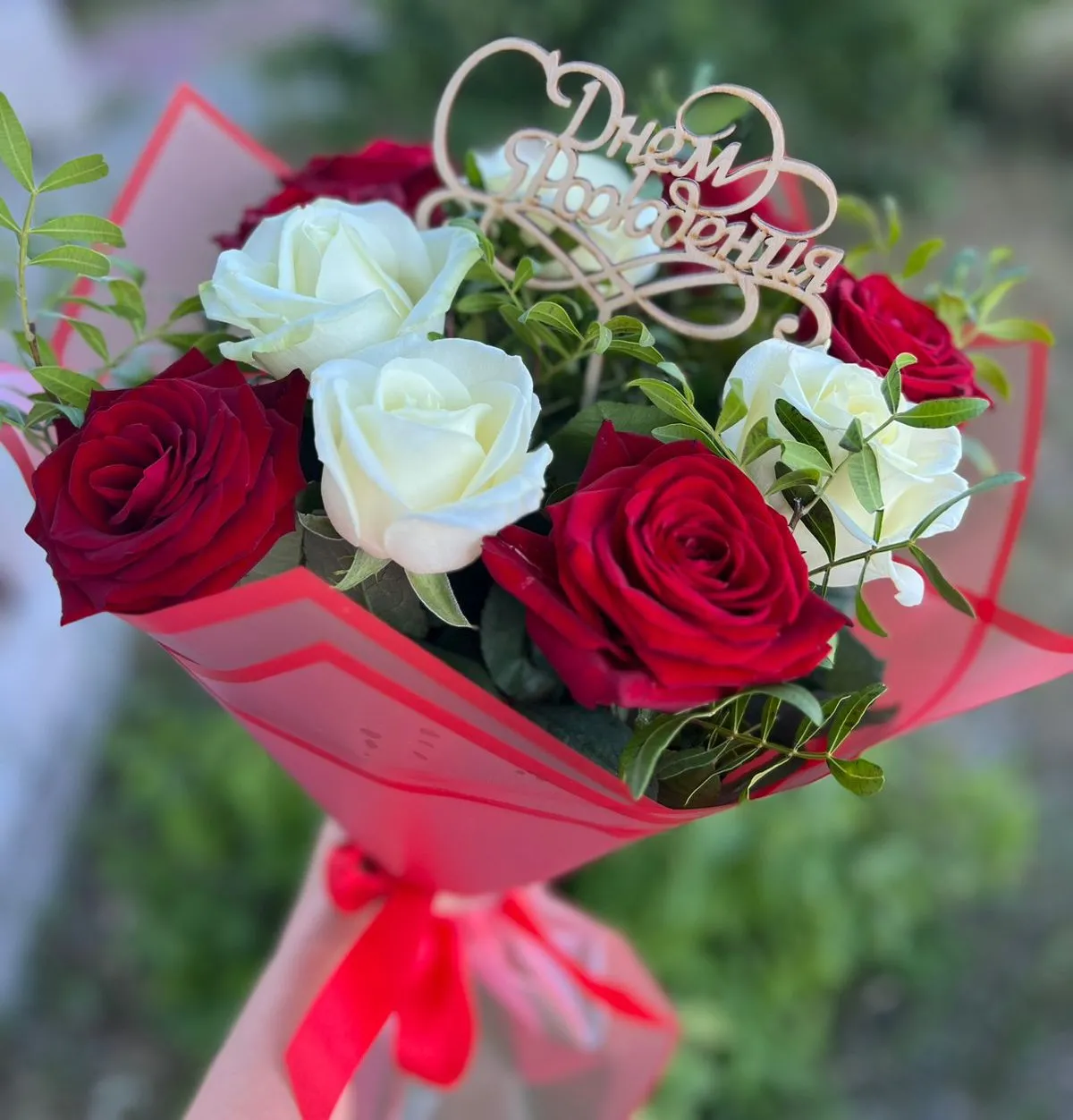 Букеты из красных и белых роз