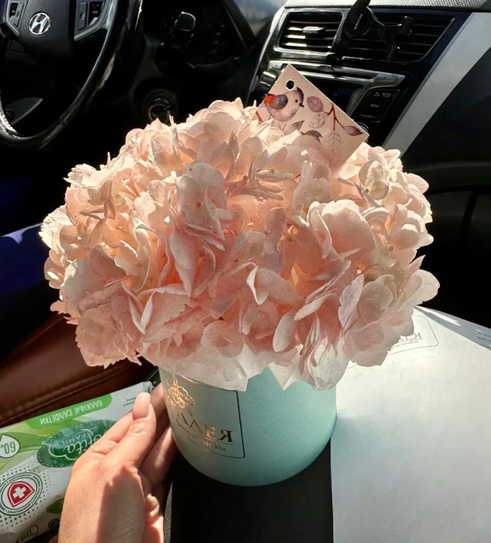 • Средний (гортензия - 3 шт., шляпная коробка, оазис)